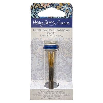 Tapestry - Premium quality gold eye tapestry needles in a reusable glass jar with brushed silver lid. Jar contains 6 needles. Sizes 18, 19 & 22 x2 of each size. Long eye suitable for multi thread skeins with a blunt rounded point. Great for using on open weave needlecrafts without damaging fabric. Packing includes handy cut out needle size guide for easy reference. Packing includes handy cut out needle size guide to keep in your jar. Glass jar dimensions: (diam/h) 16 x 60mm.